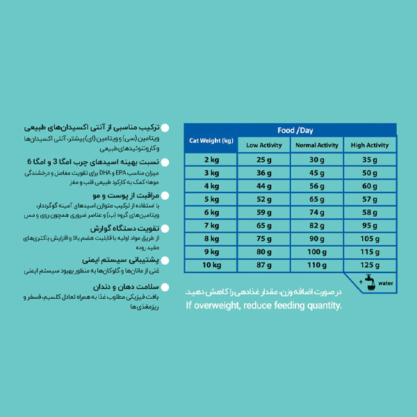 با فرمولاسیون علمی و مواد اولیه باکیفیت تولید شده تا نیازهای غذایی گربهات به بهترین شکل تأمین بشه.